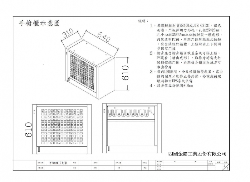 2.槍身座含槍身鎖固放置系統可獨上鎖,PE戶(射出成型),取槍身時 須先打開櫃體鐵門後,再開槍深鎖個系統方可取出槍身